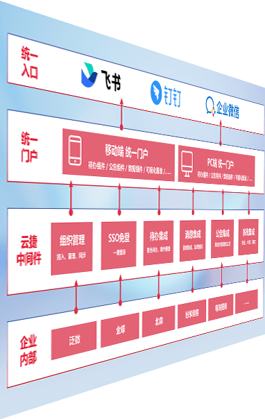 对协作平台提供支持服务,,,支持企业应用与协作平台对接,,,,包含组织同步、、消息集成、、待办集成等。。。支持目前主流的协作平台:钉钉、、、企微和飞书。。。